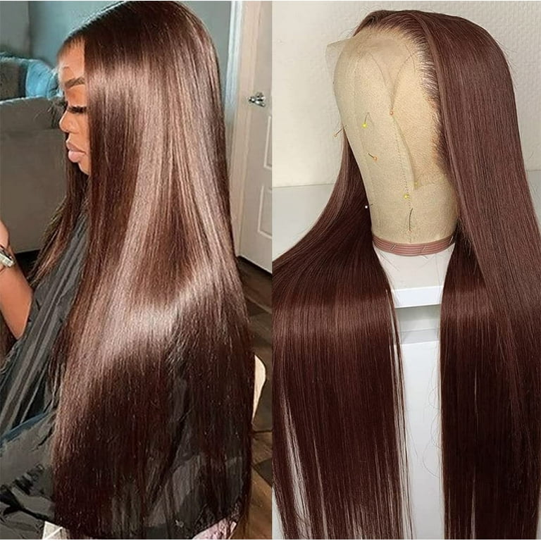 Brown Straight Lace Front Human Hair Wigs 13x4 Transparent Hd Chocolate Brown Frontal Wigs For Women Pre Plucked Dark Brown Colored 4 Lace Front Wig With Baby Hair 150 Density Hair 22 Inch